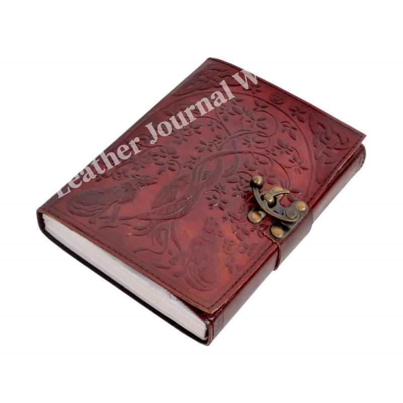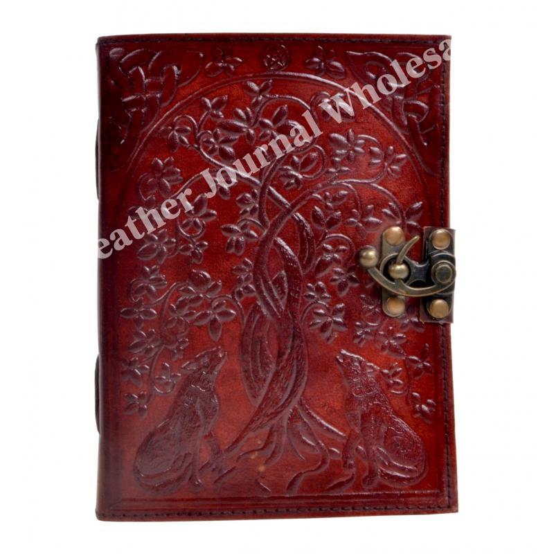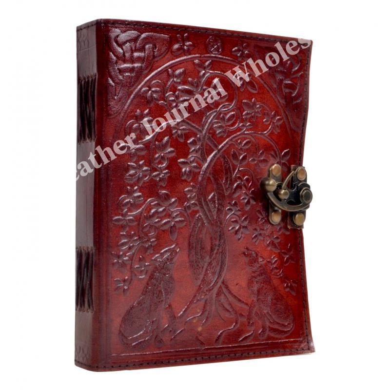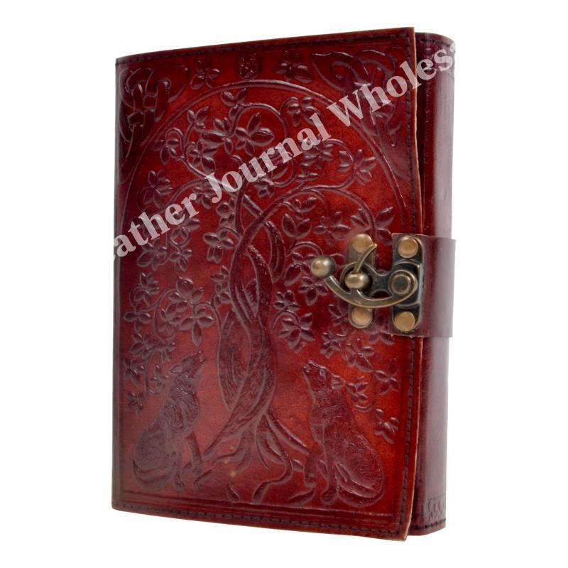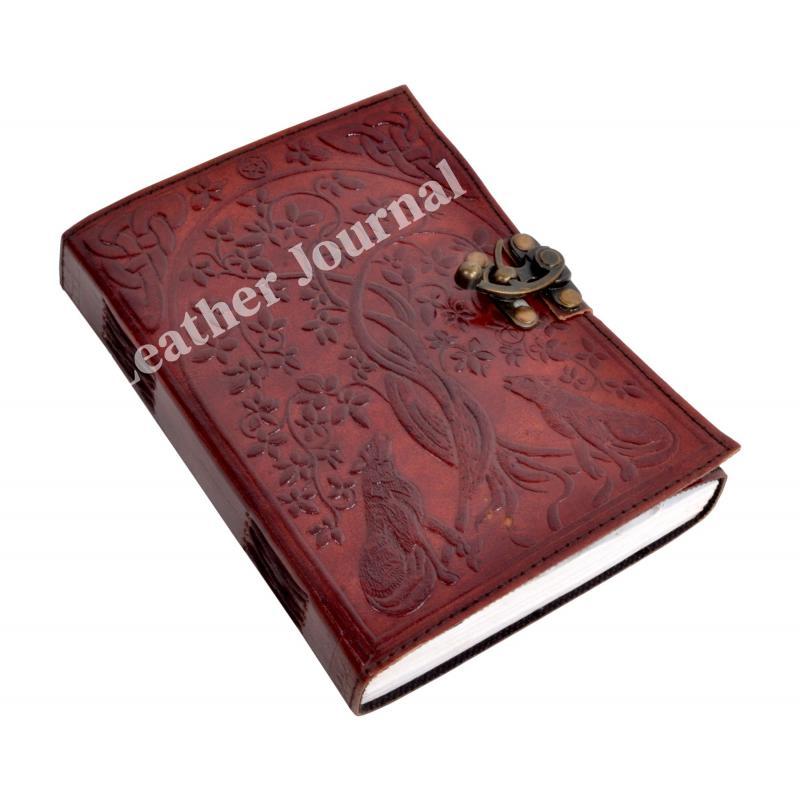 handmade wolf into the tree leather journal sketchbook leather notebook