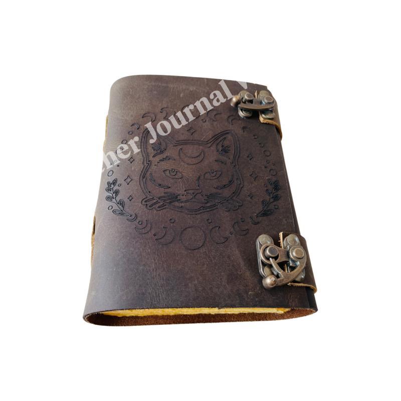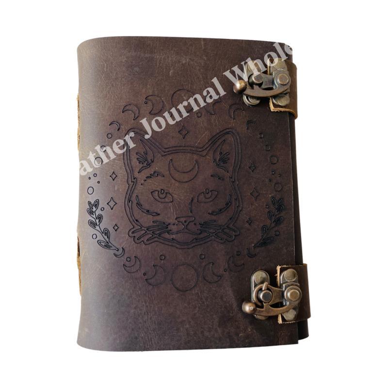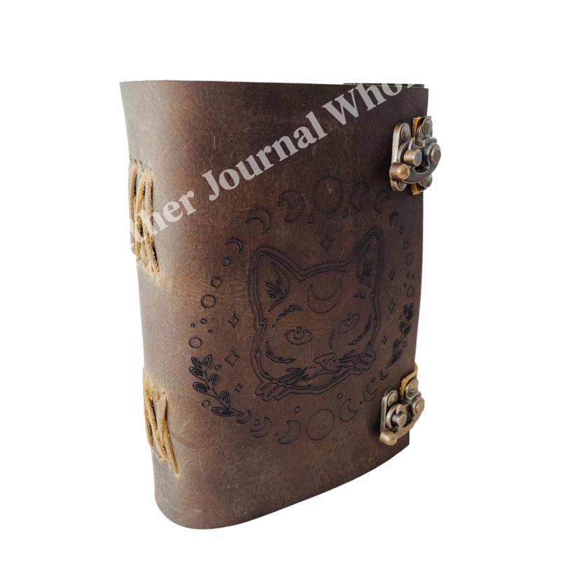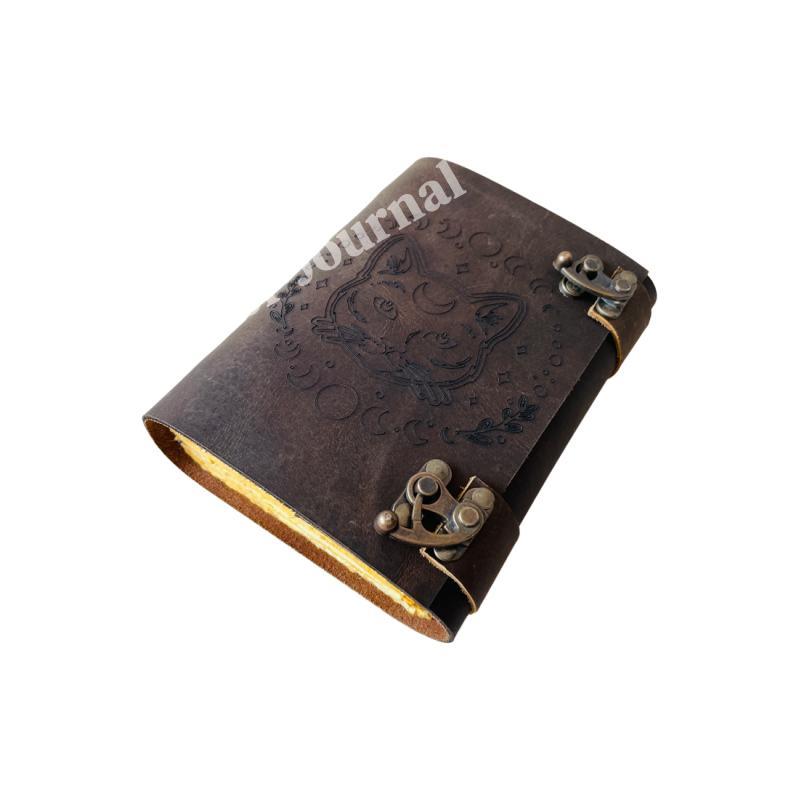vintage journal notebook sketchbook Book Of Shadows spell book cat design with sun moon lazer cutting school office deckle paper