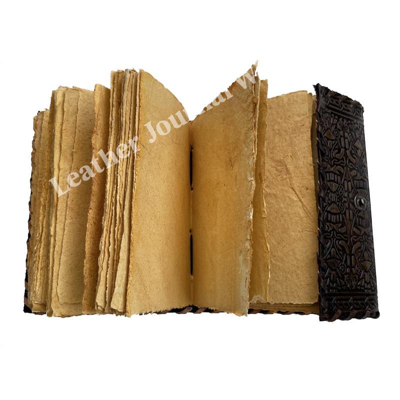* JOURNAL FOR WOMEN: A perfect Leather Journal for Women by Leather Journal Wholesaler PVT. LTD.  This Vintage Journal is made from Genuine leather which is naturally tanned with oils, Salt & Scents, and is Chrome free. These Girl's Journals are made with genuine leather so each varies in look and shade producing a unique item. The Distress Leather combined with Antique Vintage paper makes it a perfect Book of shadows - Spell Book.