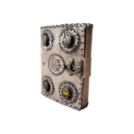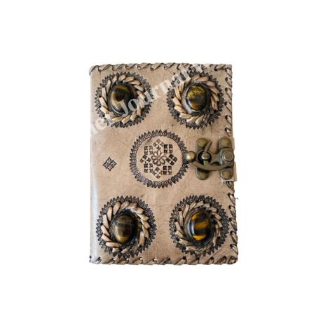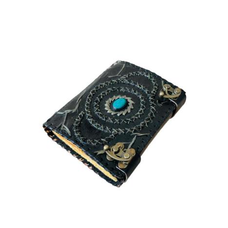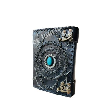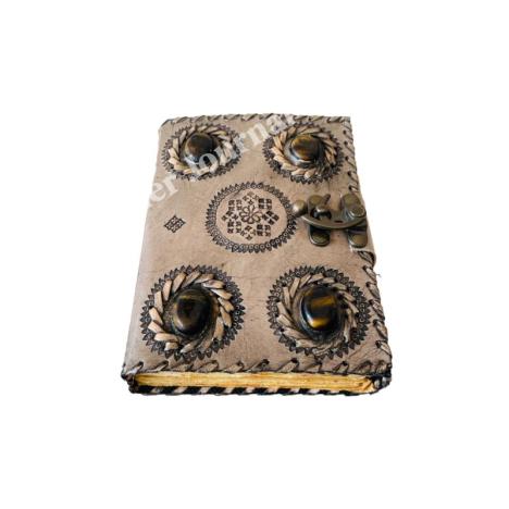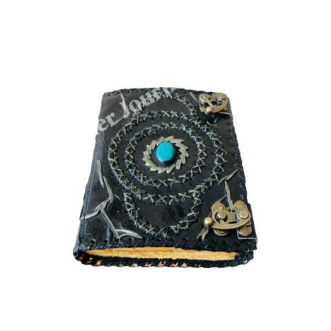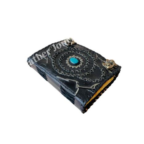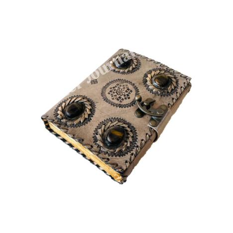 Vintage Handmade Leather Bound Journal with Gemstone Inlay and Brass L...Product Code: LJW547