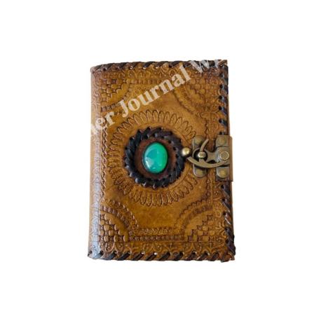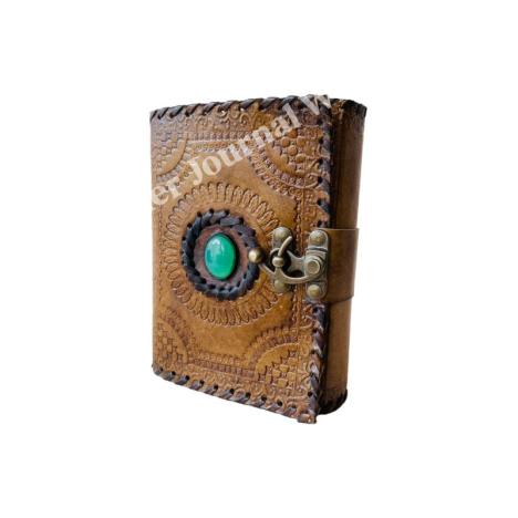 Handmade Leather Journal with Green Gemstone & Brass Lock | Vintage Br...Product Code: LJW548
