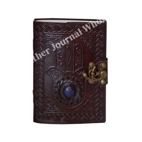 Genuine Leather Journal Wholesaler Hamsa Hand Stone Journal NotebookProduct Code: NEW7815251