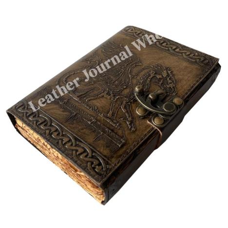 Antique Charcoal Horse Embossed Leather Journal Spell Book Of Shadows...Product Code: LJW782019