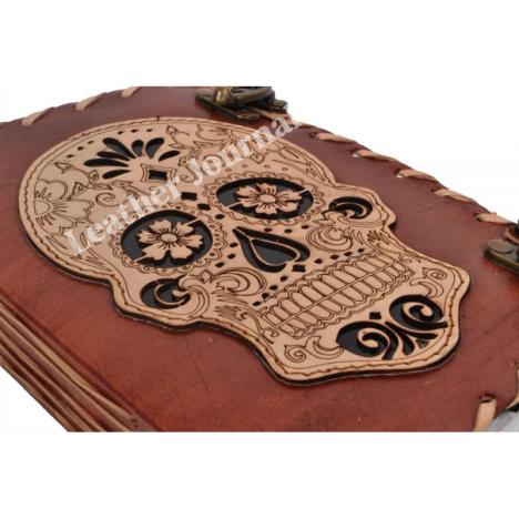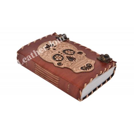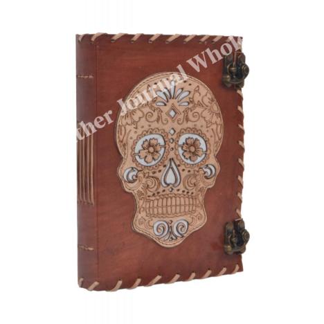 Day Of Dead Design Leather Journal Antique 2 Lock Cut Work Side Stitch...Product Code: SFW7815166
