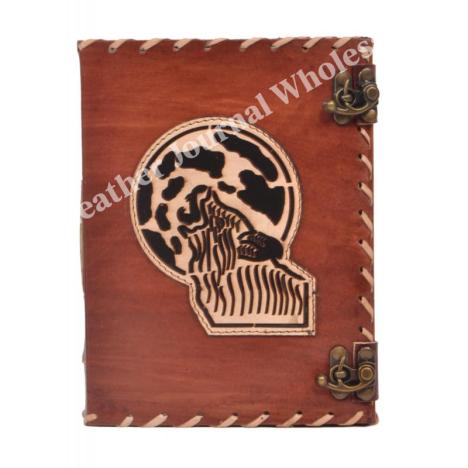 Beautiful Moon Wolf Design Handmade Vintage Leather Journal Notebook 1...Product Code: SFW7815170