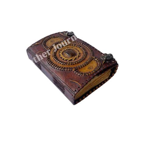 Leather Stone Journal Deckle Art Paper Embossed Leather Bound Writing...Product Code: LJW473