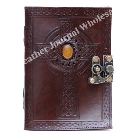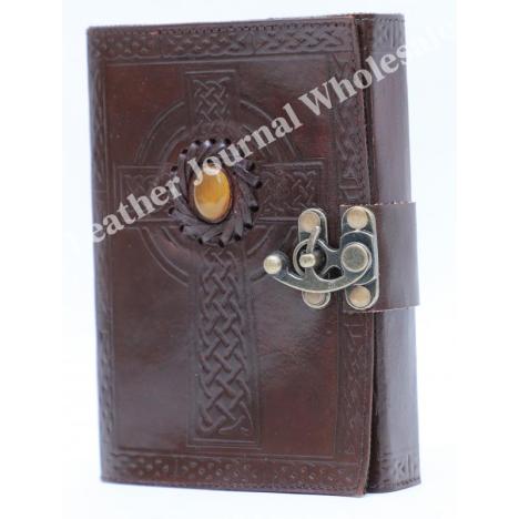 Handmade Leather Journal Celtic Cross With Third Eye Stone Design Sket...Product Code: SFW781719