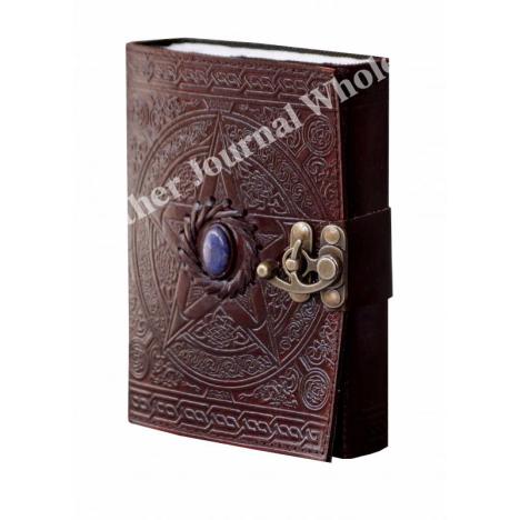Handmade Pentagram With Single Stone Leather Journal Sketchbook & Note...Product Code: SFW781676